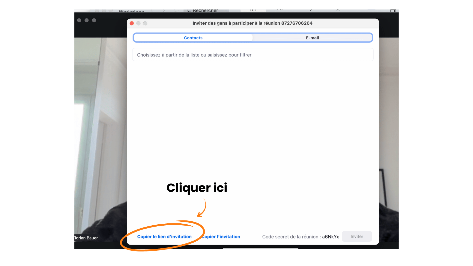 2- Cliquez sur Copier le lien d’invitation et collez-le dans votre navigateur Chrome.
